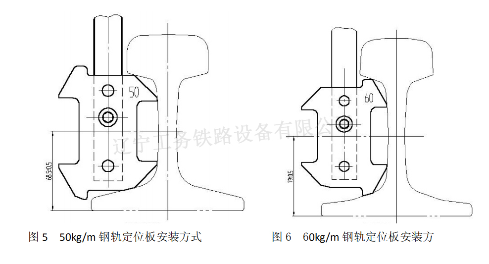 根據(jù)所鉆鋼軌的類型確定定位板安裝方式,如(圖 5)是 50kg/m 鋼軌定位塊安裝方式,(圖 6)是 60kg/m 鋼軌定位板安裝方式;兩種定位方式轉(zhuǎn)換只需卸下內(nèi)六角螺釘 M10,翻轉(zhuǎn)定位板 180 度裝入,擰緊螺釘即可,兩邊定位板要同時(shí)翻轉(zhuǎn)一致。
