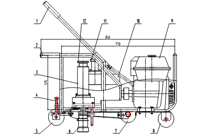 1操縱桿、2機(jī)架、3扭矩調(diào)整器、4調(diào)整螺釘、5后軌行輪、6扳頭、7輔助支承輪、8前軌行輪、9汽油機(jī)、10齒輪箱、11換向手輪、12扭矩調(diào)整手輪